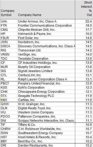 Steven Russolillo On Twitter Here S A List Of S P 500 Companies With Highest Short Interest Uaa Tops The List Per Factset